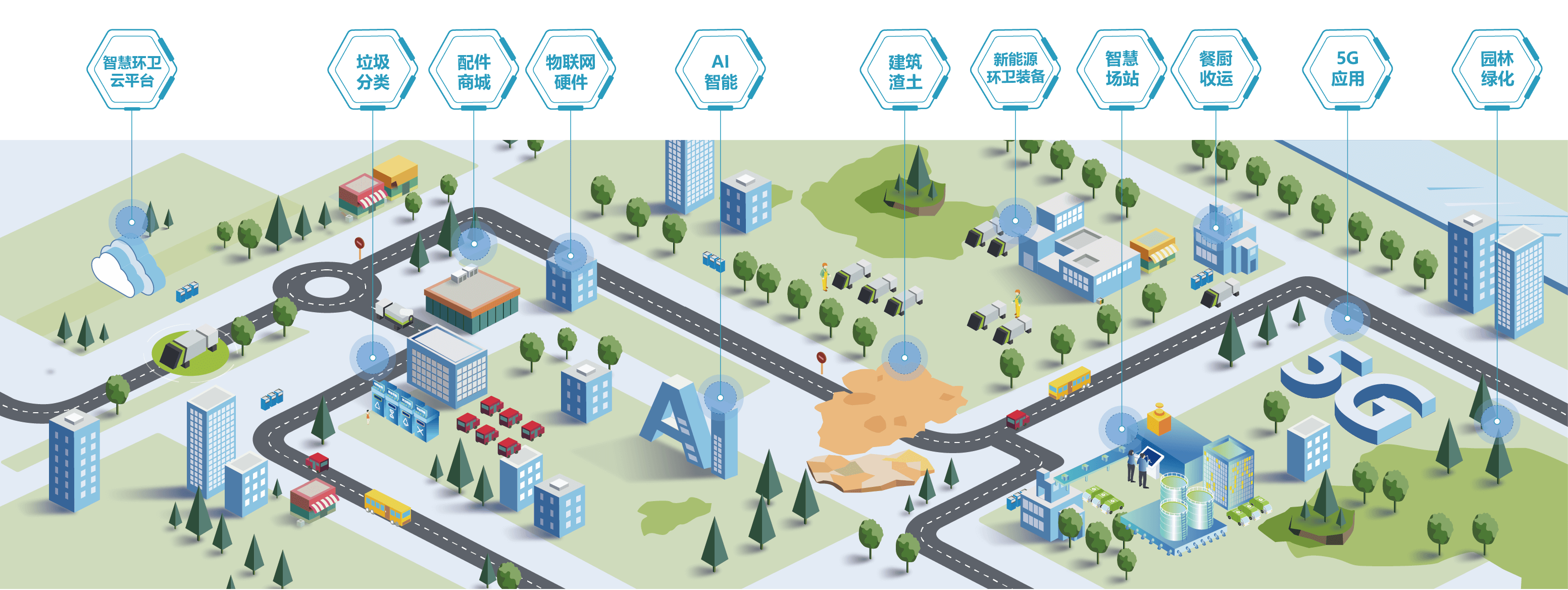 基于互联网、物联网、人工智能、大数据、云计算等技术,公司自主开发国内领先的环卫全产业链智慧环卫云平台,该平台拥有58余项智慧环卫相关的软件著作权及专利,汇集全球智慧融合“大云物移智”技术,实时互联城市服务中的人、车、物、事,形成全域服务治理模式,并以“数智化”赋能城市面貌出新出彩。现在平台已在全国254个城市落地环卫数字化运营项目,为全国超10万台产品的客户给予智能服务,为智慧城市建设实现高效的生产空间、宜居的生活空间、和谐的生态空间赋能助力。